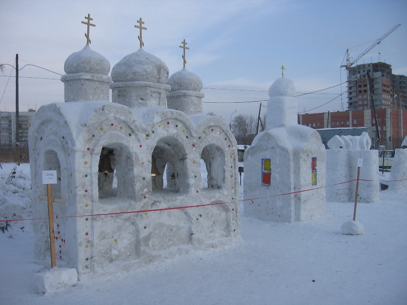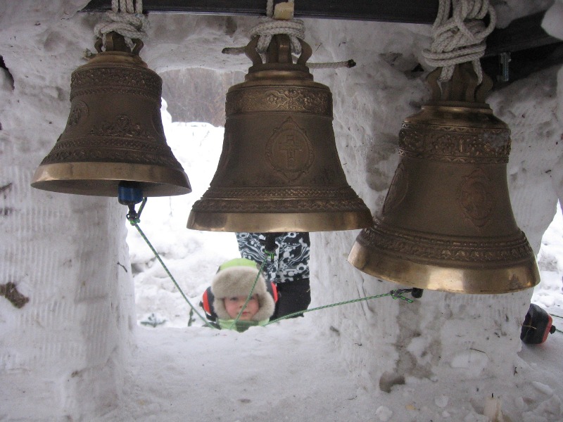 Надо сказать, по опыту прошлых лет, что все участники нашего фестиваля весьма успешно находят оптимальное приложение своим способностям. Если художественно подкованные люди могут акцентировать внимание на виртуозности исполнения работы, то те, кто не имеет такой возможности, часто проявляют большую сообразительность и находят такие варианты, которые при относительной простоте исполнения выглядят очень гармонично. Так, например, в прошлом году команда из Новосибирской школы звонарей выполнила из снега звонницу с настоящими колоколами. Эта работа пользовалась среди зрителей самой большой популярностью, ведь в колокола можно было звонить! Нами пока не найдено заметок о фактах создания звонницы из снега ранее. Так что, возможно, такая звонница появилась на нашем фестивале впервые.