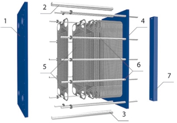 В процессе работы устройства жидкости движутся в различных направлениях навстречу друг другу, передавая тепло через стенку (стальные перегородки, которые находятся в приборе в определенном количестве). Чем меньше пластин – тем выше теплопередача и меньше стоимость агрегата.