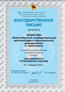 10–13 февраля 2015 года в выставочном комплексе «Кузбасская ярмарка» (г. Новокузнецк) проходил XXIII Сибирский строительный Форум, целью которого является объединение представителей ведущих компаний строительной сферы, научно-исследовательских центров и вузов для знакомства с современными технологиями и обмена опытом. В выставках Форума приняли участие более 70 компаний из Барнаула, Горно-Алтайска, Новосибирска, Томска, Москвы, Санкт-Петербурга, Краснодара, Красноярского края, а также Новокузнецка, Кемерово и Прокопьевска.