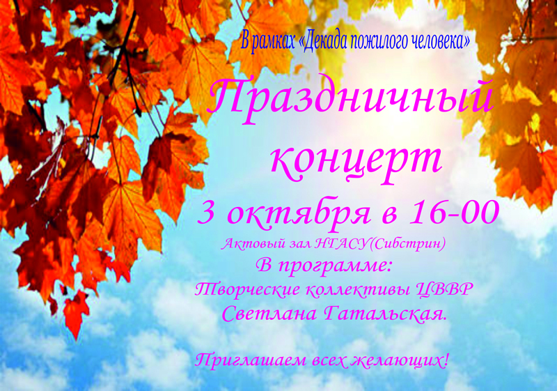 3 октября 2019 года (четверг) в рамках проведения Всероссийской декады пожилого человека в НГАСУ (Сибстрин) пройдет праздничный концерт.