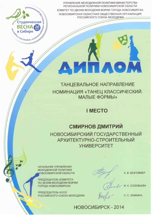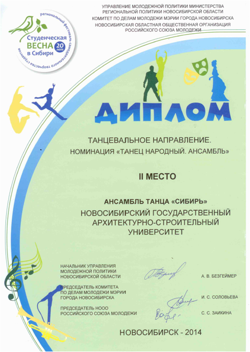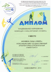 С 17 марта по 25 апреля 2014 года на концертных площадках Новосибирска и крупных областных центров прошел XX региональный фестиваль самодеятельного творчества студентов «Студенческая весна в Сибири».