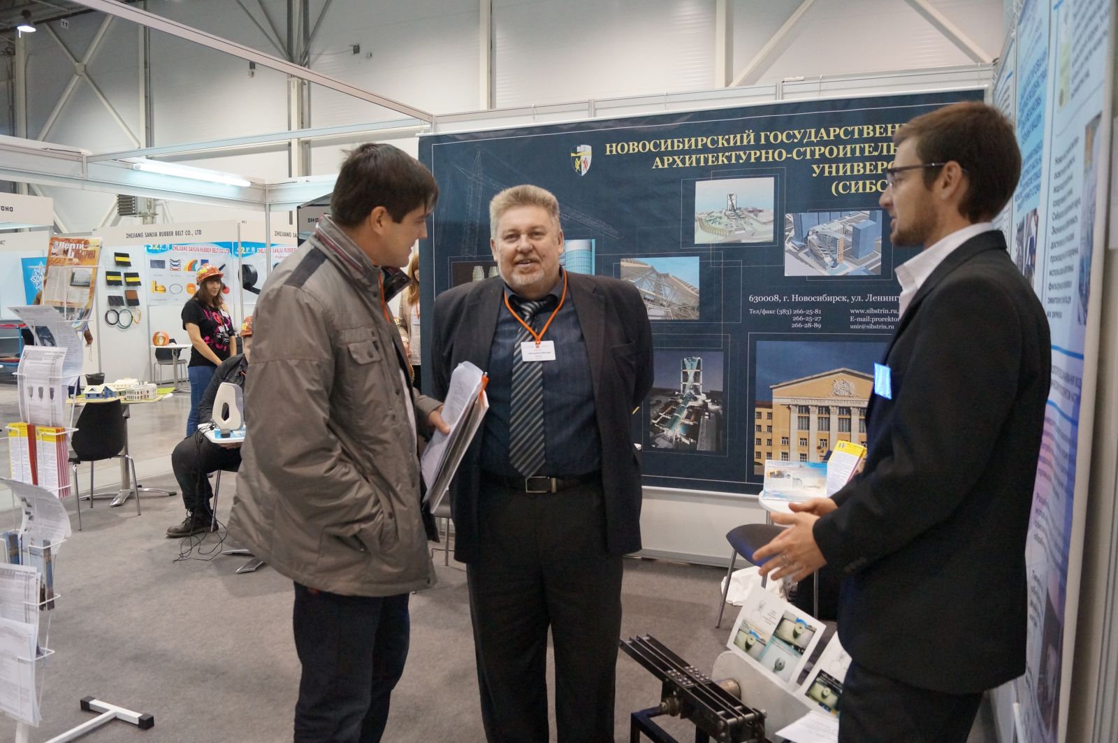 НГАСУ (Сибстрин), являясь постоянным участником специализированных промышленных выставок, на «СибСтройЭкспо» представляет инновационные разработки в области строительного машиностроения, водоснабжения и водоотведения, тепло- и энергосбережения, экологии. На стенде вуза демонстрируются современные технологии и оборудование, а в презентации разработок принимают участие преподаватели кафедр, ведущих научно-исследовательскую и производственную деятельность, в частности руководитель НТИО, канд. техн. наук, ст. преподаватель, доцент кафедры ВВ А. А. Функ, директор НОЦ «Машины, механизмы, автоматика», канд. техн. наук, доцент кафедры СМАЭ В. Б. Ломухин и учебный мастер кафедры СМАЭ И. В. Лаптева.